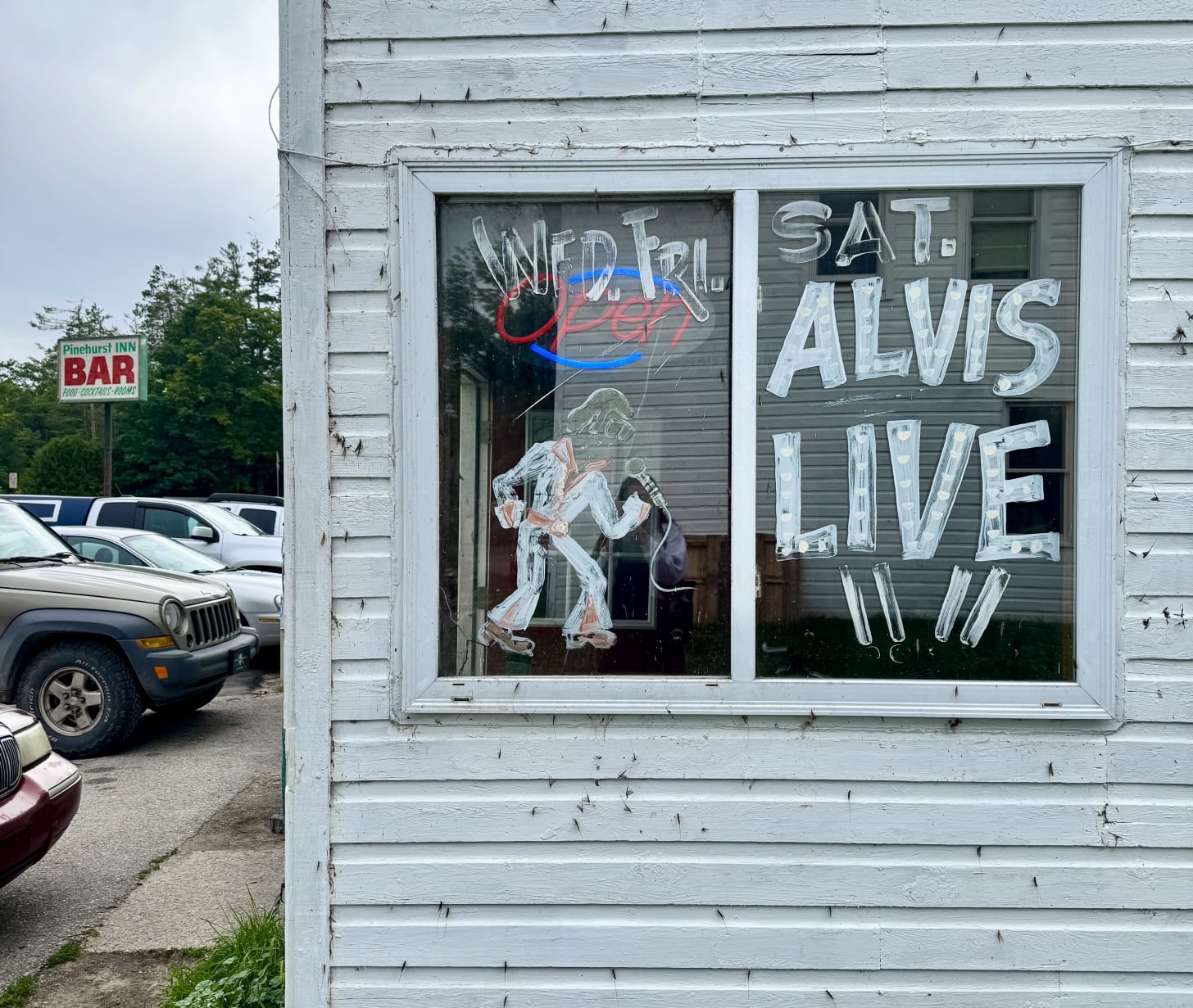 I’d like to begin this broadcast with a shoutout to Jameson Draper, who emailed me this time last year to recommend a place he called “the quintessential Northern Michigan town.” The town of Indian River (pop. 2,210) sits along a river of the same name, connecting a pair of inland lakes chock-full of trout, perch, walleye, and a state-record sum of sturgeon. And that was all well and good, but what grabbed me was the next part: “Have a pizza and a Labatt at the Pinehurst Inn, but be weary of whatever ‘coke’ the bikers that live in the corners give you. The owner cosplays an unintelligible Elvis; he goes by ‘Alvis.’ I’m pretty sure the second floor is a halfway house.”