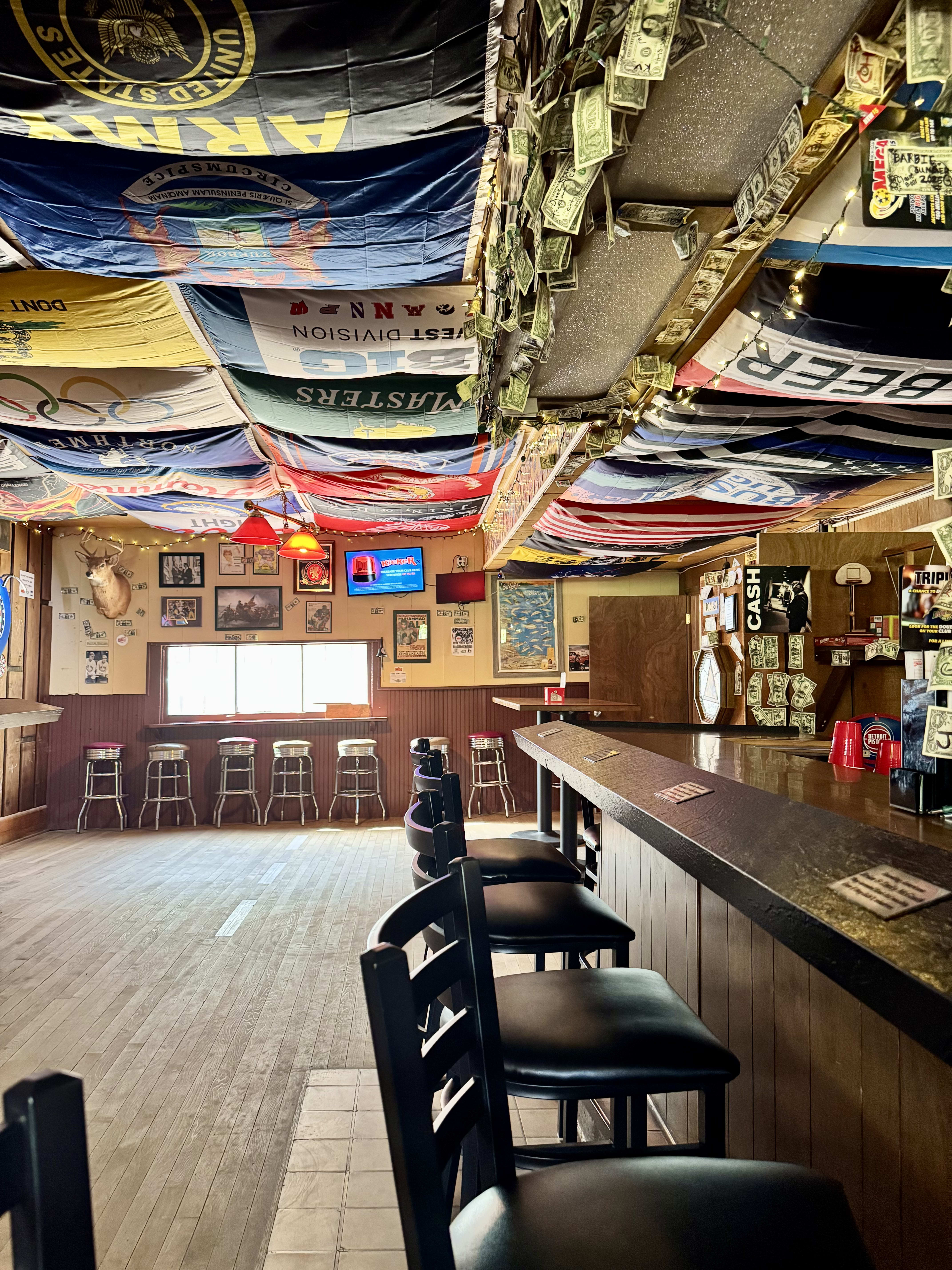 This Petoskey dive describes itself as “the most American bar in America,” a tagline that both intrigued me and came with certain implications. So it was a pleasant surprise when Ron’s Bar turned out to skew more libertarian than straight-up MAGA. What was once an auto mechanic shop became the bar as it exists today in 2021, thanks to the efforts of a man called Honest Ron, who the website describes thusly: “Athlete. Singer. International Statesman. Ventriloquist. Warrior. Quilter. Romantic. Philanthropist. Culinary Savant. These are just a few of the titles Honest Ron enjoys after a lifetime of high achievement. These days he prefers one title above all others. Patriot.”