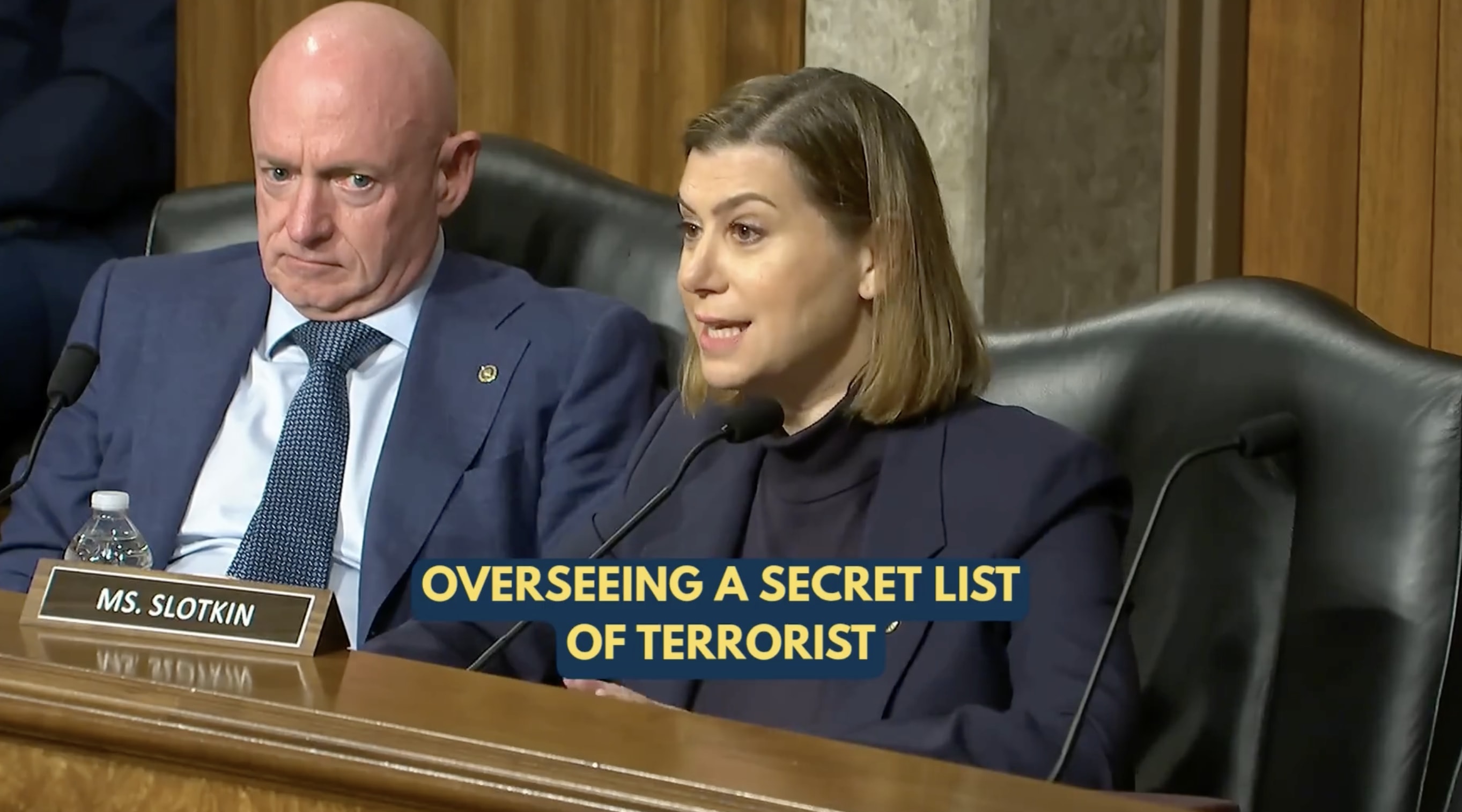 The Trump administration is drawing up “secret lists of terrorist groups inside the United States,” Senator Elissa Slotkin said on the floor of Congress yesterday — the first such reference to the effects of National Security Presidential Memorandum 7 (NSPM-7).