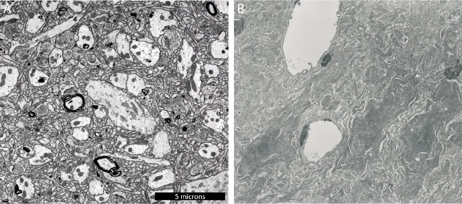 At least one minimally-invasive method to assess brain ultrastructure, such as a limited number of small punch biopsies analysed with