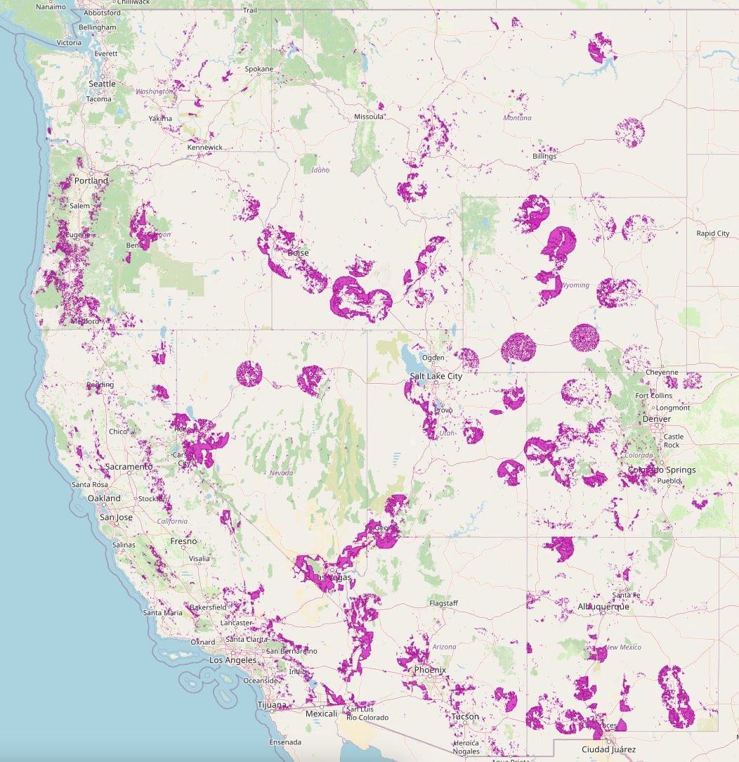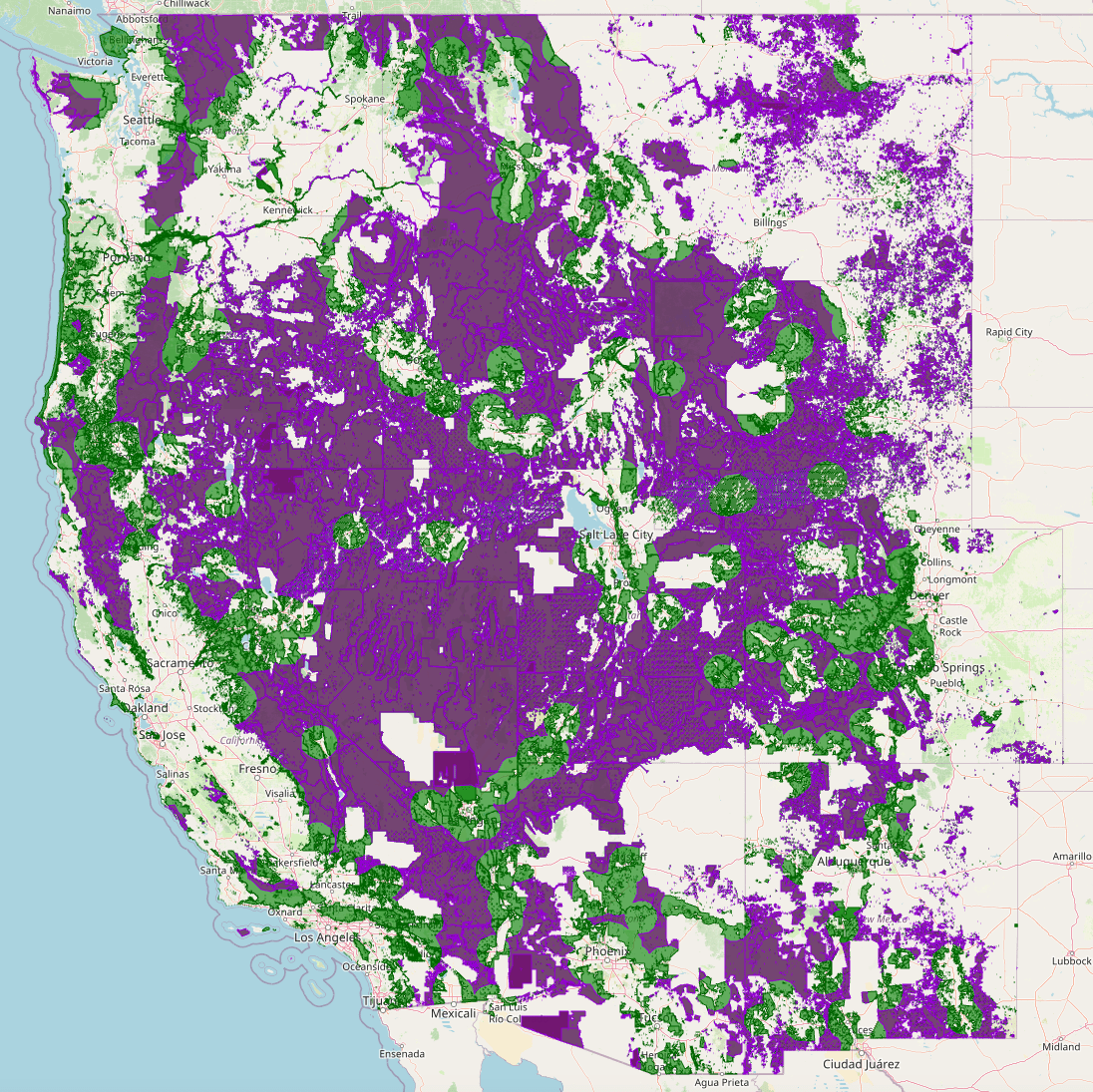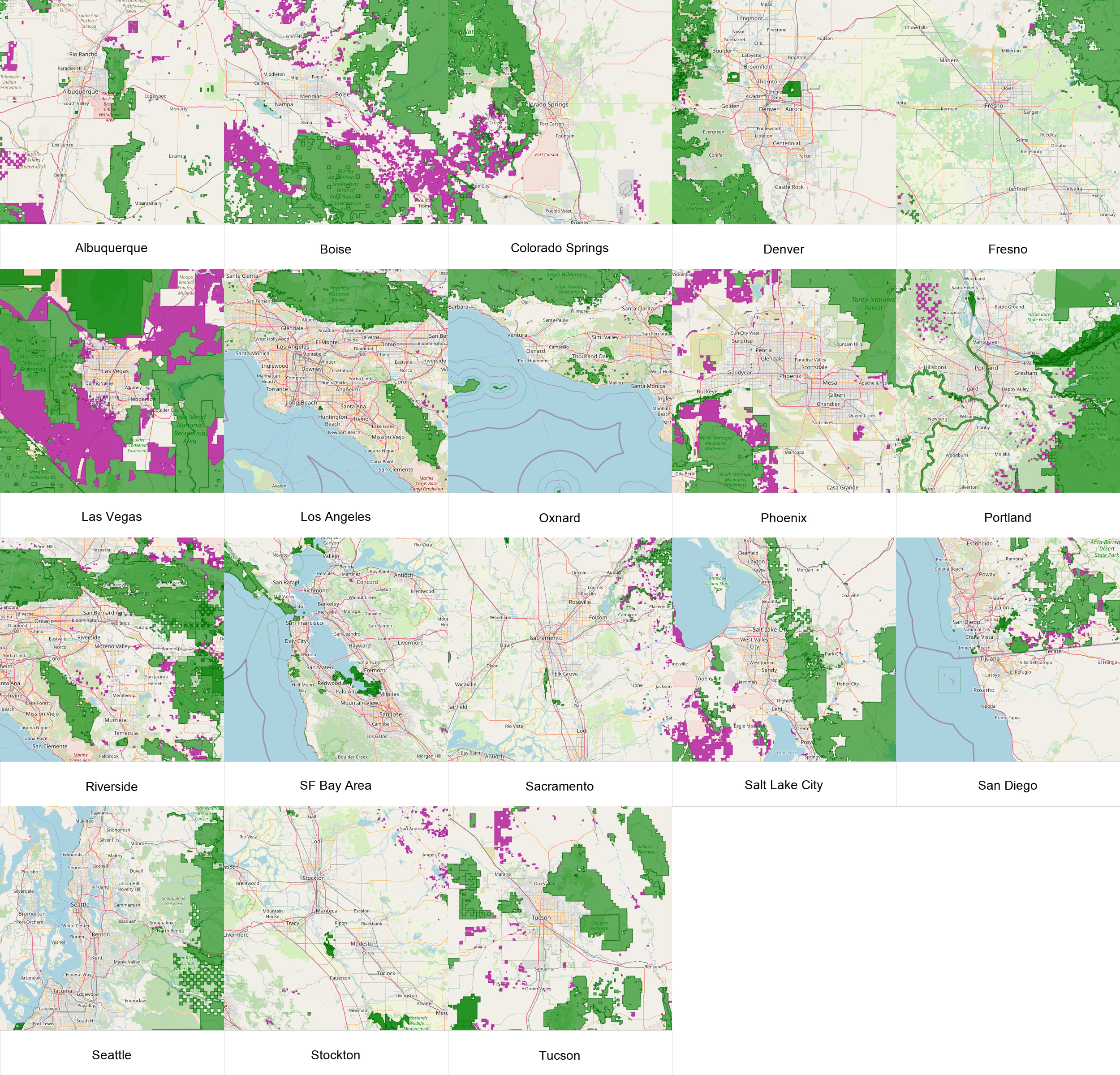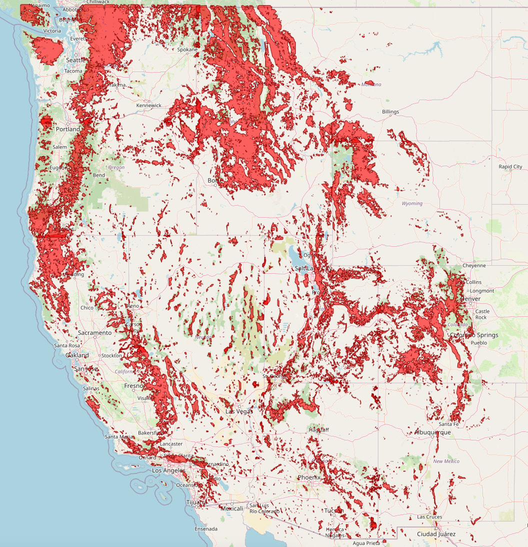 I found that only a small number of major cities (notably Las Vegas, and to some extent Phoenix, Boise, and Tucson) could take advantage of opening up unprotected federal land for development. Most large cities in western states are adjacent to large tracts of federal land, but most of this land is unsuitable for development, either because it’s mountainous or because it’s a protected area such as a National Forest or Wildlife Refuge. Millions of acres of federal land actually are practical to develop, including some abutting population centers, so it doesn't seem unreasonable to me to open up some of it — but I also don't expect such development to substantially increase housing availability in western states because most of it is not near large population centers with high housing demand.