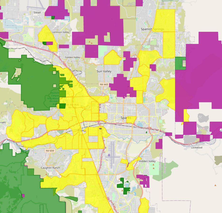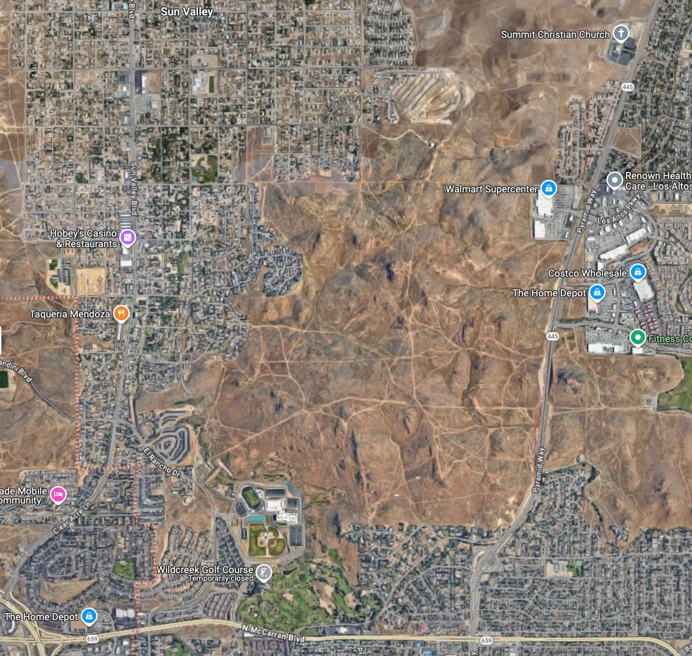 Reno, Nevada has a huge tract of empty federal land right in the middle of the city.