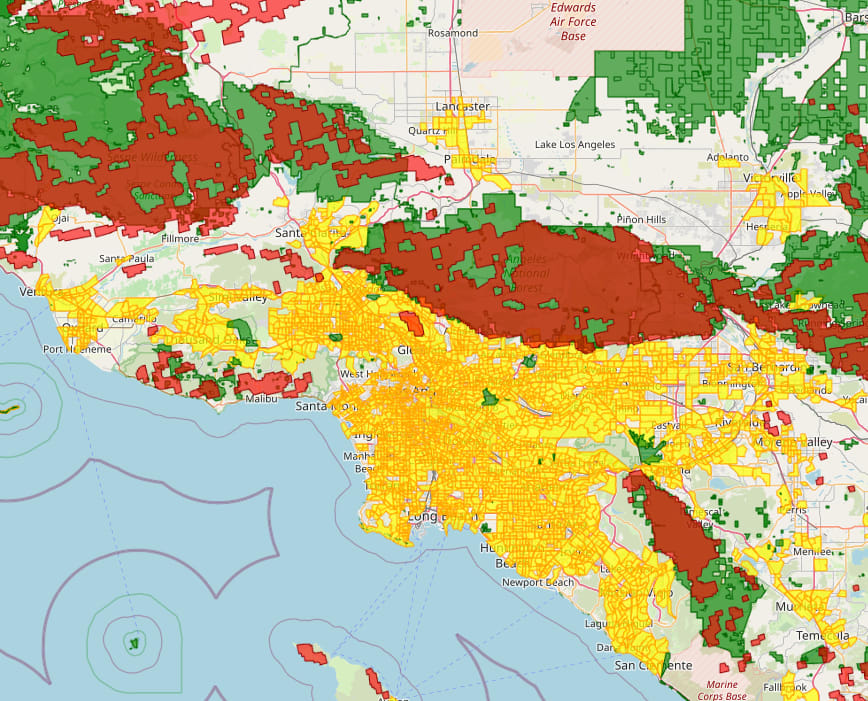 Similarly, Los Angeles is hemmed in by mountainous federal land to its north: