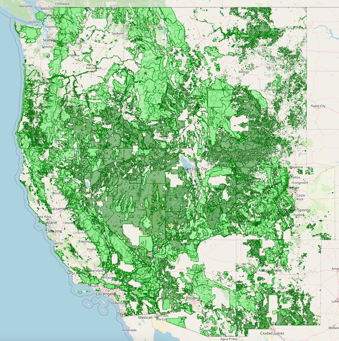 Altogether ~209 million acres of federal land in western states (~60% of all federal land) are protected from development in some way.