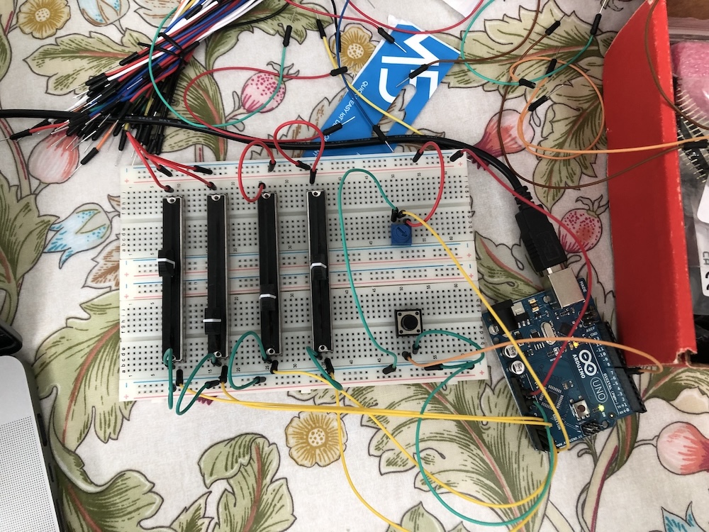 I started the project with a 15 year old Arduino Inventors Kit and only a vague idea about how to use it. The first goal was simple: build a basic MIDI controller on a breadboard. If I could get some potentiometer readings, map them to 12 discrete values - one for each note in an octave - and emit MIDI messages, I would have taken a small step in the right direction. Adding an onboard synth module and designing a pretty box to put it in could wait until later.