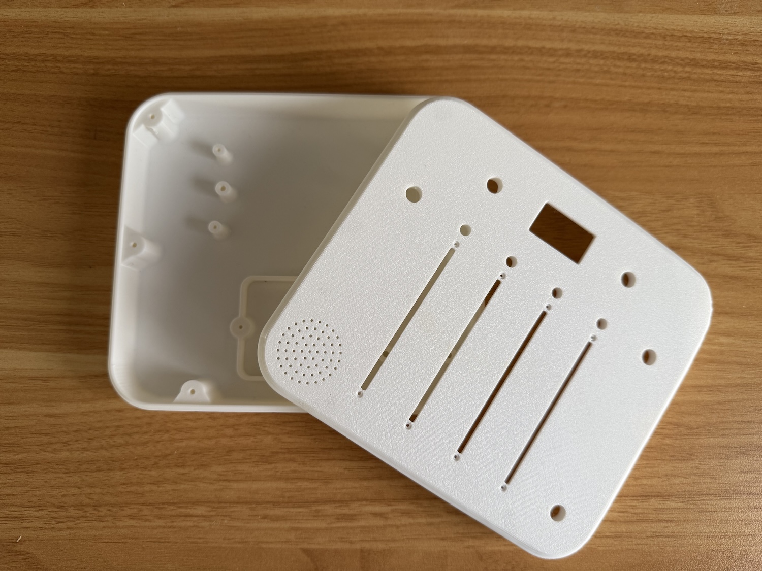 After wiring up the breadboard, the next hurdle was figuring out how to build a proper enclosure. I looked for off-the-shelf cases, but nothing matched the size I needed, and everything seemed to come in either black or beige. So I decided to learn some basic CAD and 3D-print the enclosure on a friend’s Bambu Labs A1 Mini.