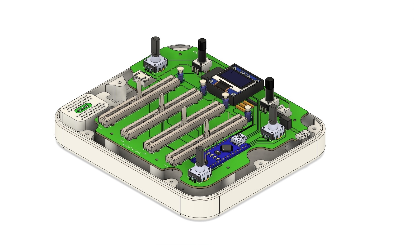 - A custom PCB and 3D-printed enclosure
