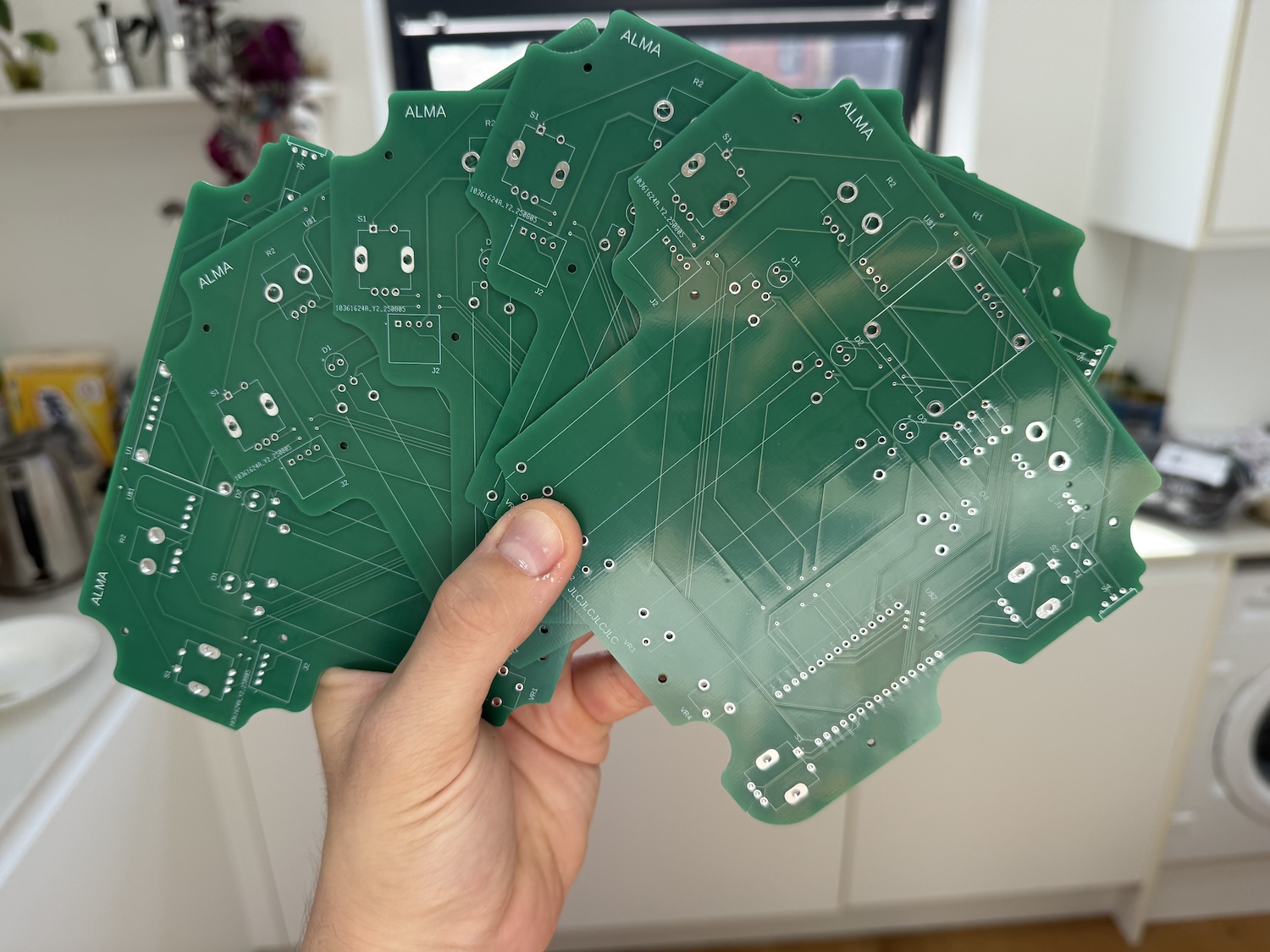 When I was finished, I exported the PCB design file and uploaded it to JLCPCB. Five boards (the minimum order) cost £35.41 including shipping, and they arrived five days later. It blows my mind that this is possible.