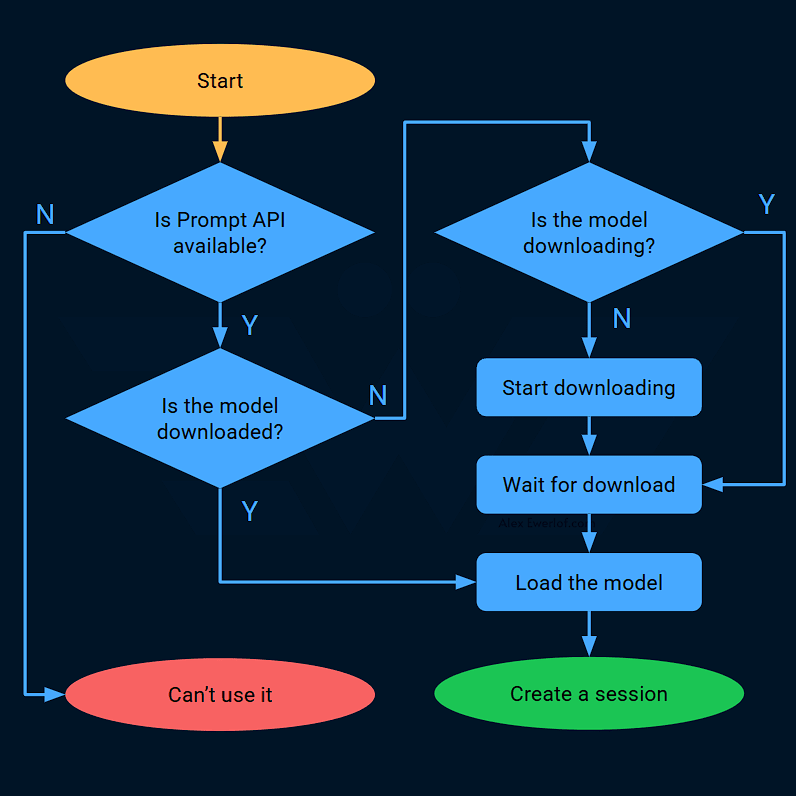 Download the model: again, the browser Prompt API does the heavy lifting here (e.g. locating the file to download from the server) giving you the option to be notified as the download progresses and finished. A couple of notes:
