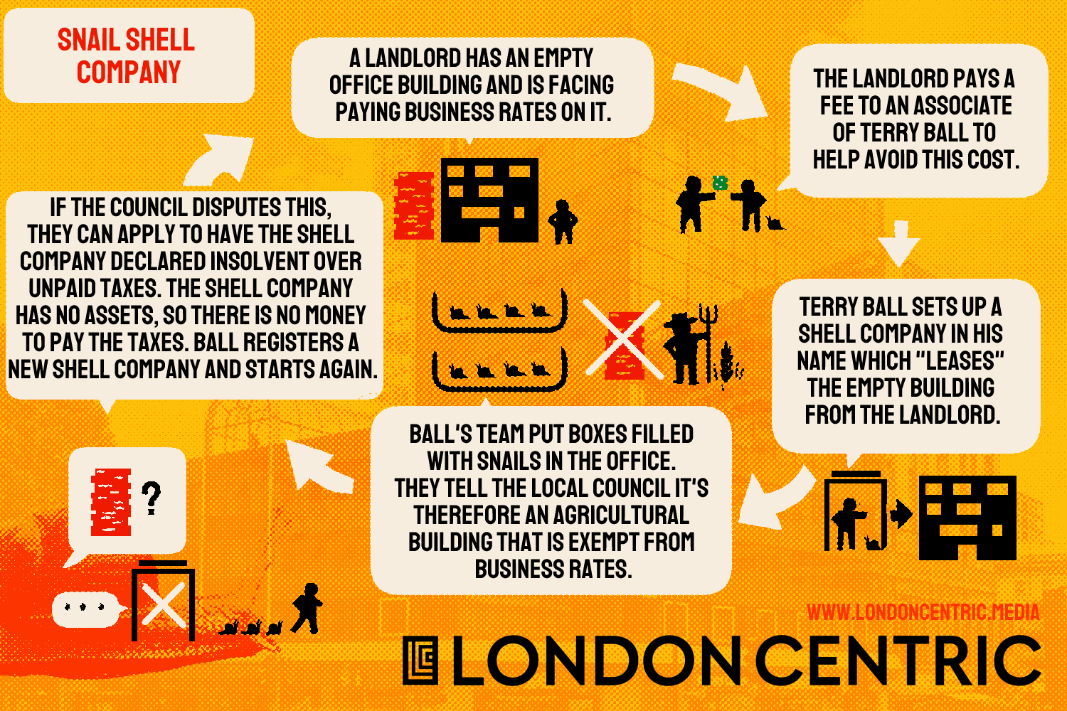 Three hours earlier I knew none of this. I’d turned up unannounced at Ball’s snail farm HQ with a faint hope that I might catch a glimpse of the man behind one of the most brazen tax dodges I’d ever encountered in the capital. It’s just the latest part of London Centric’s ongoing investigations into the financial scams taking place in plain sight across London.