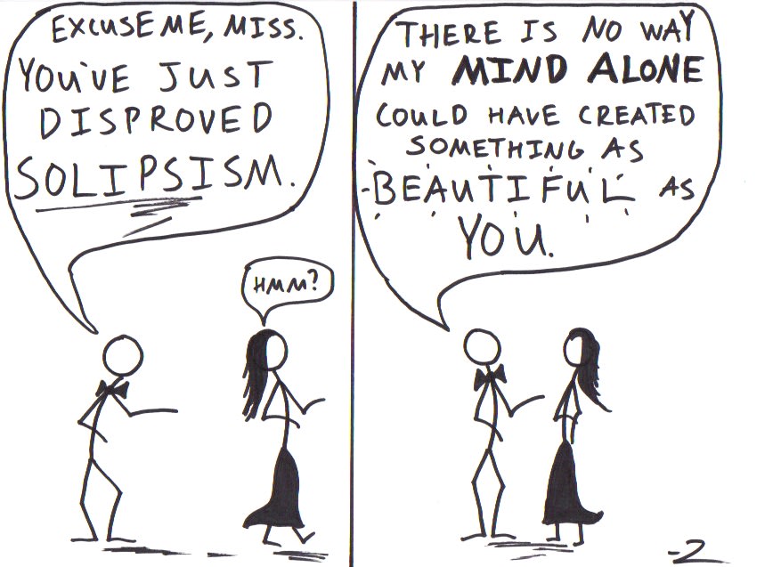 Which brings us to my philosophical line in the sand. As Descartes famously aphorized: “I think, therefore I am.” My own mental existence is indubitable. Even when I think, “Maybe I don’t really exist,” I am ipso facto thinking and existing. The physical world, in sharp contrast, is dubitable. I can readily imagine that that my mind is the only thing that actually exists, and everything else is just an illusion created by my own mind.