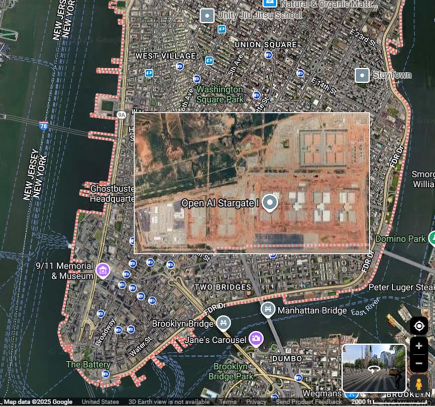 Looking at Stargate specifically, we see in the images below a utility-scale natural gas plant and substation dedicated to powering just a portion of this facility, which will likely be expanded much further in the future.