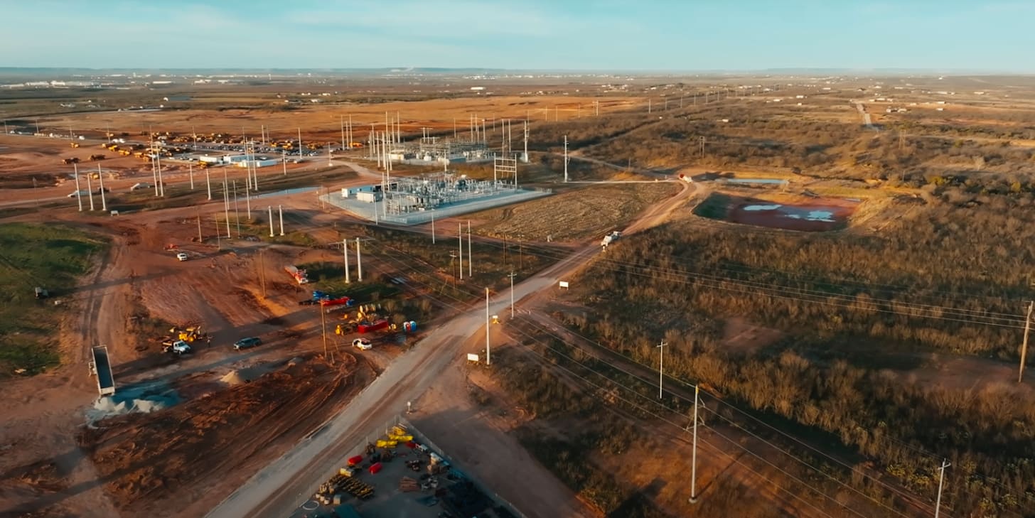 We see high voltage transmission lines, steel lattice transmission towers, switching and transformation equipment, power transformers, busbar systems, lightning arresters and multiple bays for redundancy. Currently, Abilene has a 200MW, 138kV substation that is being expanded by 1GW + 345kV substation with five main power transformers (for a total of 1.2GW).