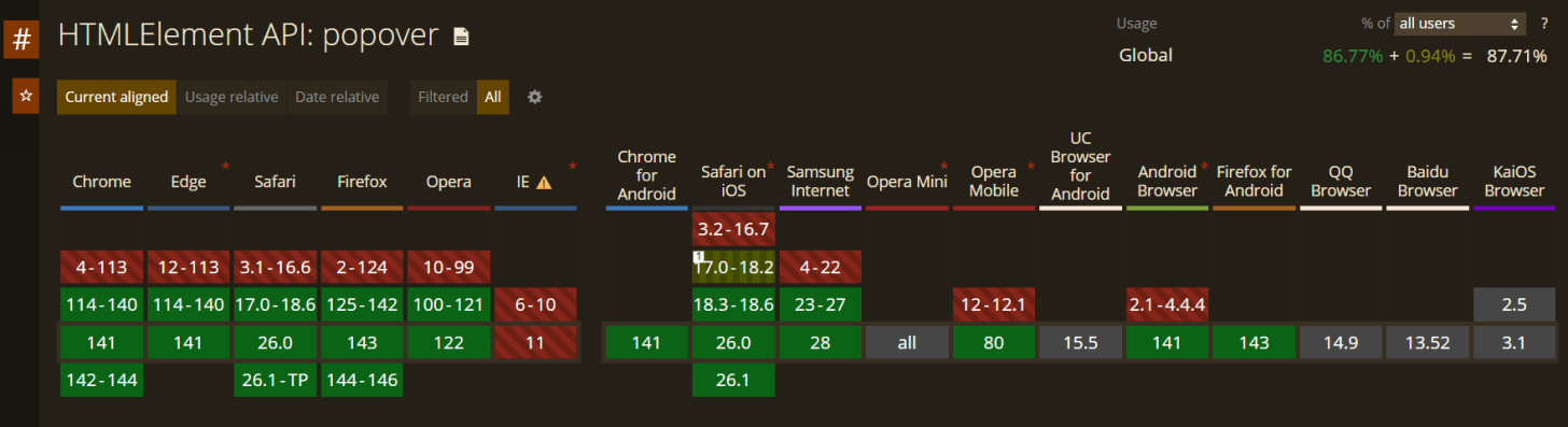 Think “interaction” means “JavaScript”? Not anymore. The platform now ships powerful native features—<dialog>, the Popover API, CSS Anchor Positioning, Scroll Snap, ::target-text, :has(), light-dark(), native lazy-loading, scroll-driven animations, and more. Below is a practical, production-minded tour with tiny snippets, accessibility notes, official docs, and direct Can I Use links. I’ve also left image placeholders where you can drop support screenshots from caniuse.com.