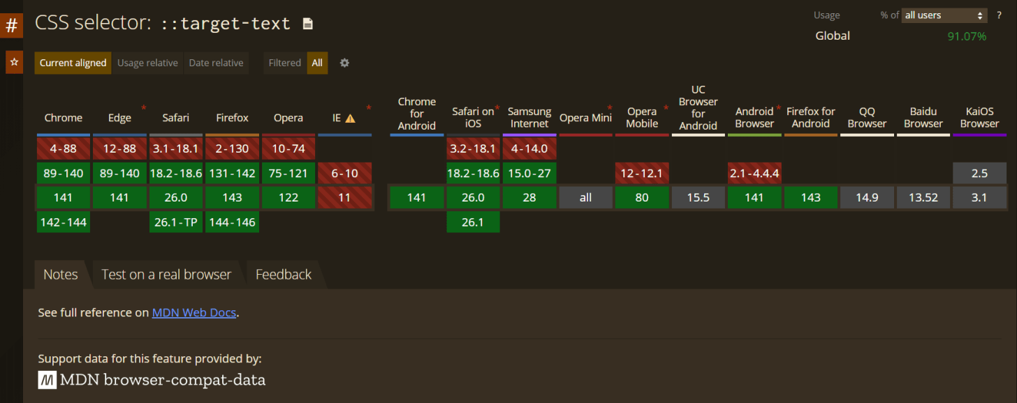 https://developer.mozilla.org/en-US/docs/Web/CSS/::target-text