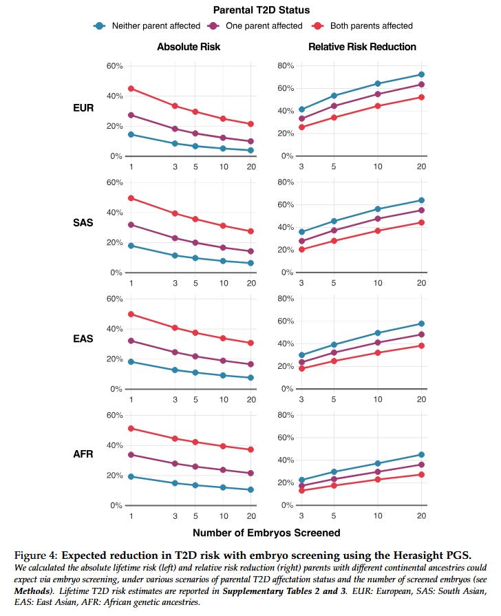 A European family with five embryos and no family history can cut their diabetes risk by 47% and an African family 29%, with everyone else in between.