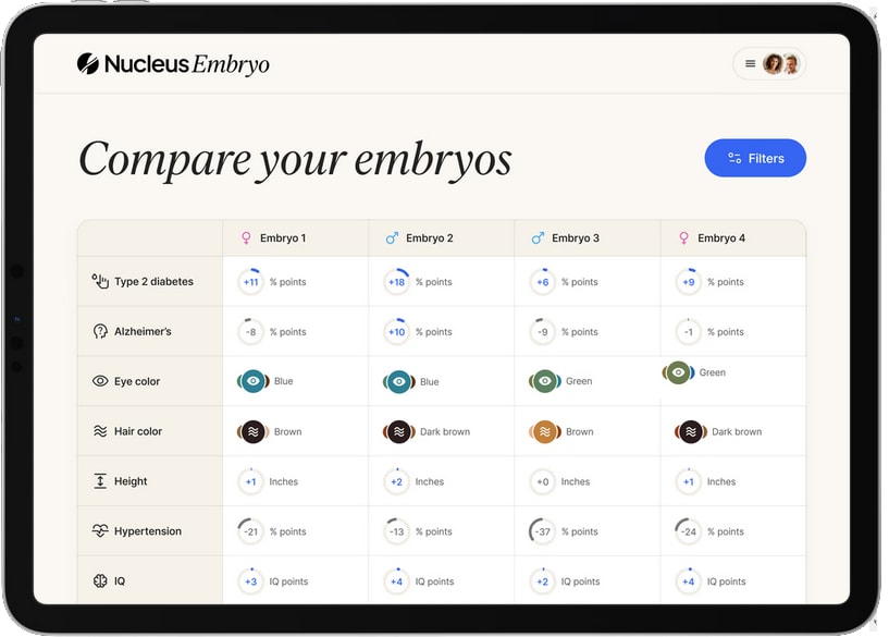 Critics accused GP and Orchid of offering “designer babies”, but this was only true in the weakest sense - customers couldn’t “design” a baby for anything other than slightly lower risk of genetic disease. These companies refused to offer selection on “traits” - the industry term for the really controversial stuff like height, IQ, or eye color. Still, these were trivial extensions of their technology, and everybody knew it was just a matter of time before someone took the plunge.