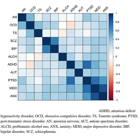 But also, here’s the table of correlated genetic risks for psychiatric disorders: