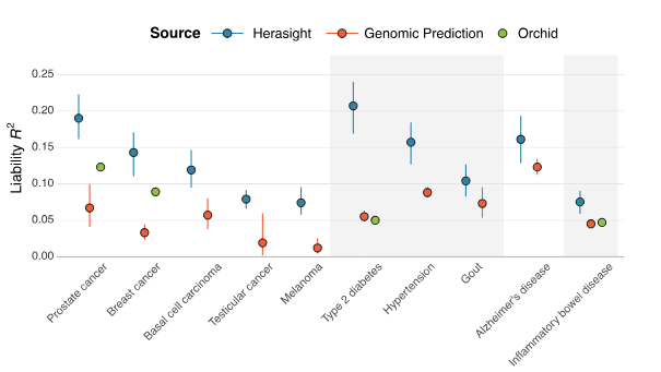 Herasight’s white paper compares its own predictors (favorably) to those of Orchid and Genomic Prediction…