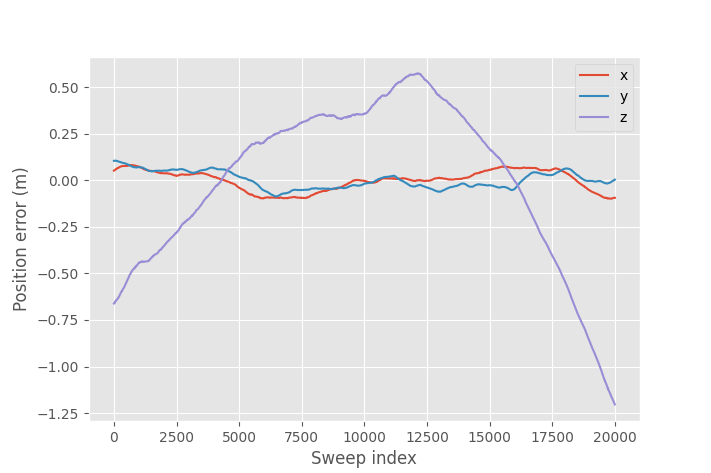 Solving the linear system for \(\Delta \mathbf{x_n}\) at each radar position gives the desired 3D position error.