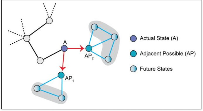 The Adjacent Possible says that you can only discover what’s adjacent to where you already are. Alchemy opened possibilities in physics that pure mechanics never would have. You need weird leaps to open up new adjacencies. The weird idea makes other ideas thinkable. It expands the search space.