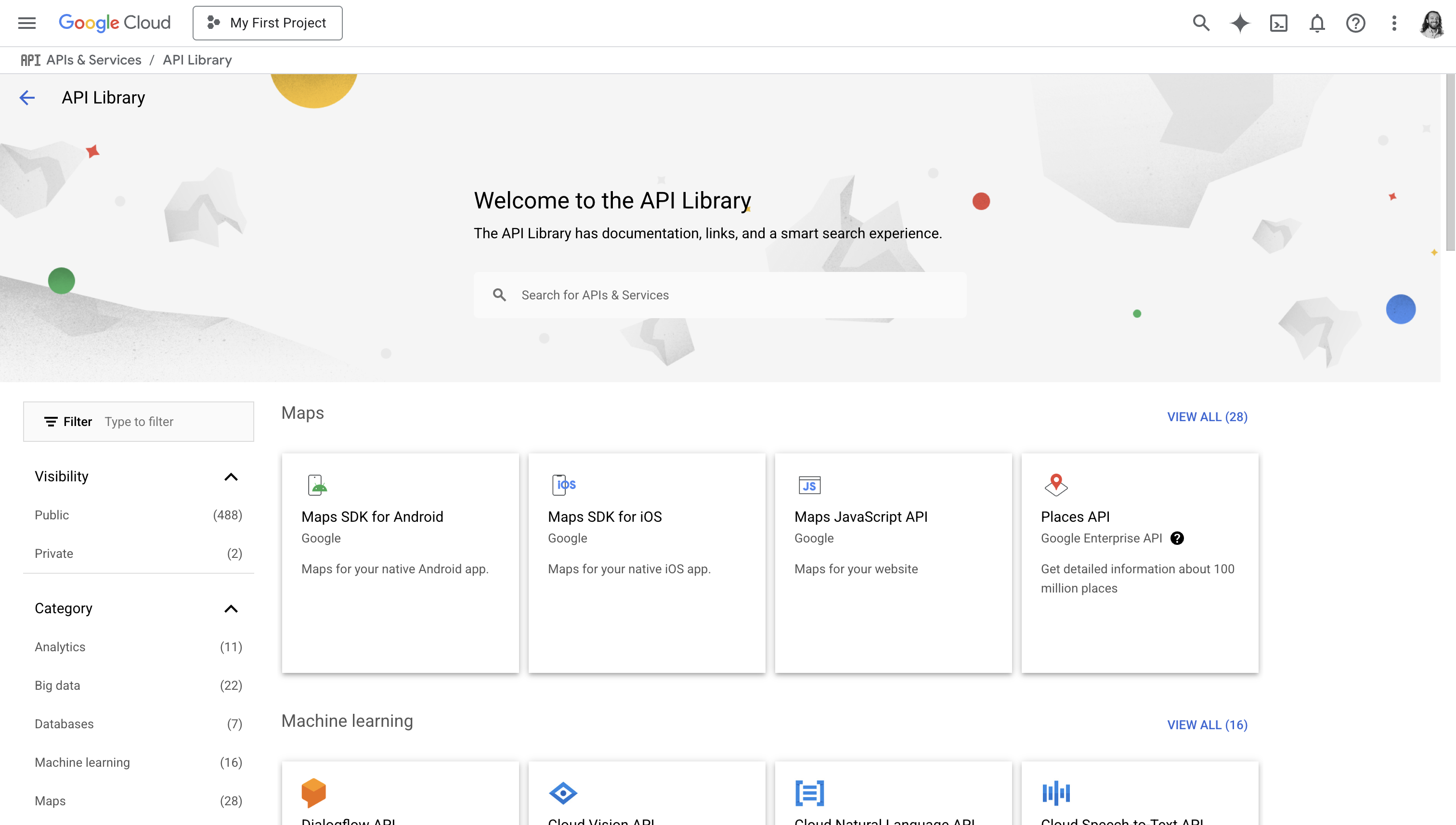 If the API you want to access isn’t listed, it may be that you haven’t enabled that API yet in your Google Cloud project. Google requires you opt into every API you use, and you do that opt-in from the API Library.
