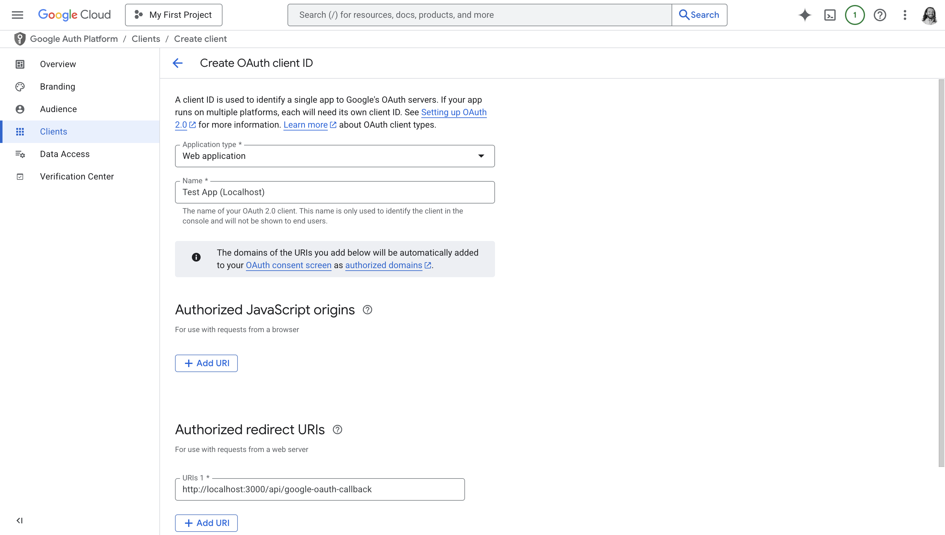 You’ll be adding code to handle redirects to this endpoint in a later section. If you’re developing your app, you can put a localhost URL here. You can create a separate OAuth Client for production later.