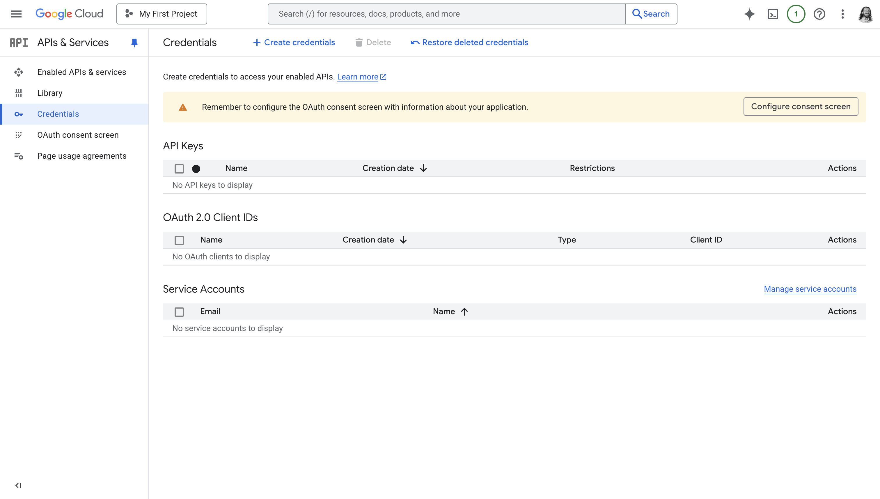 If you accidentally close this modal, or need to come back to it later, you can see this information again by going to the Credentials, and clicking on your client under “OAuth 2.0 Client IDs”.