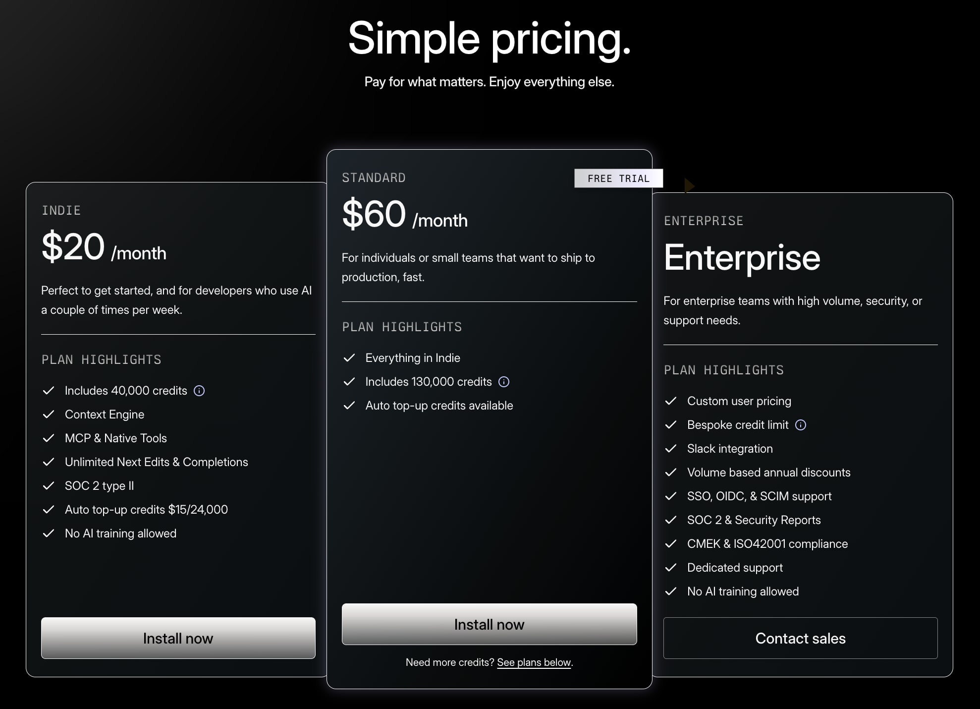 Augment Code recently switched from message-based to credit-based pricing in October 2025. You can now purchase a monthly allowance of “credits” that expires at the end of each month