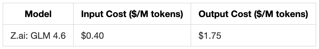In a real workflow, you could pick GLM 4.6 or similarly small models for simple tasks where they would be significantly cheaper than more powerful models such as Claude Sonnet 4.5 or OpenAI GPT-5 when you know the task is more difficult.