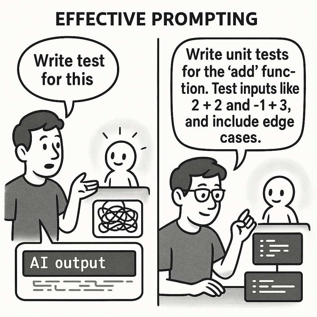 We’ve said it multiple times: effective prompting is critical. Think of writing prompts as a new core skill in your toolkit - much like writing good code or good commit messages. A well-crafted prompt can mean the difference between an AI answer that is spot-on and one that is useless or misleading. As a best practice, always provide the AI with sufficient context. If you’re asking about code, include the relevant code snippet or a description of the function’s purpose. Instead of: “How do I optimize this?” say “Given this code [include snippet], how can I optimize it for speed, especially the sorting part?” This helps the AI focus on what you care about.