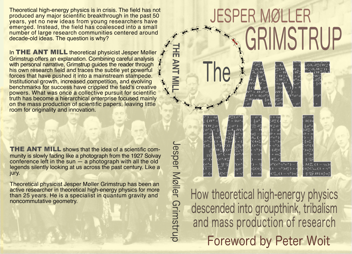 In ‘The Ant Mill’ I attempt to answer these questions. Based on 25 years of experience as an insider in several of the leading communities in hep-th — especially loop quantum gravity and noncommutative geometry — combined with my own sociological research, I analyse in ‘The Ant Mill’ the historical changes that the field has gone though in the past century and chart the social forces and incentive structures that these changes have generated. This analysis shows that a massive social force towards mainstream research has emerged, a force that pushes the field towards tribalism and groupthink — and prevents young researchers from pursuing their own, independent research interests.