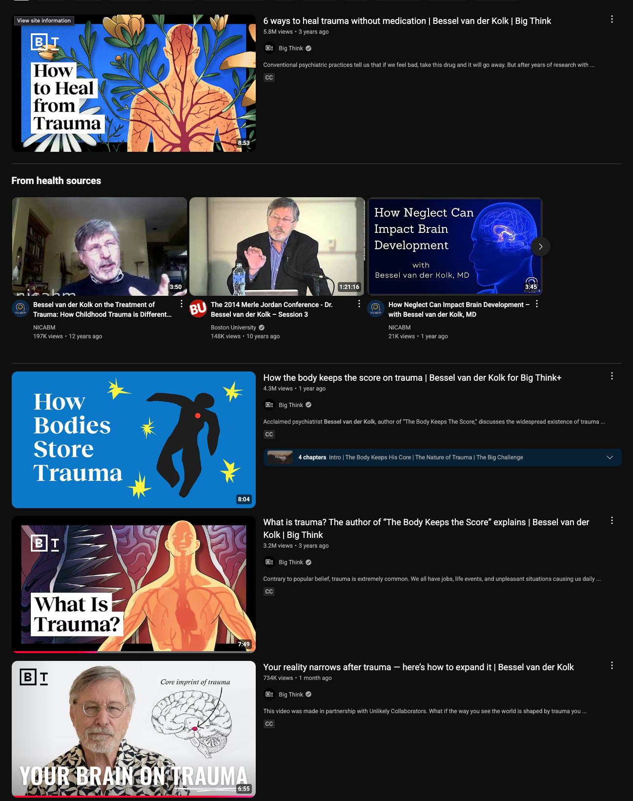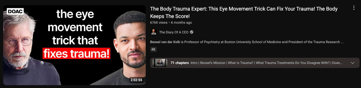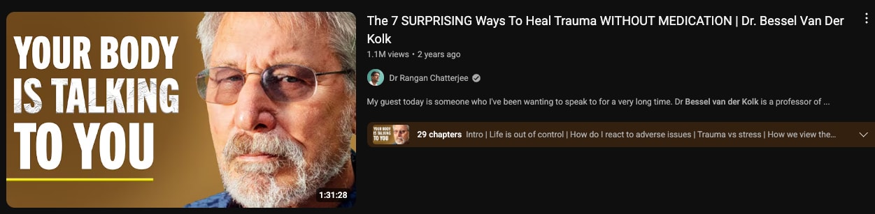 Where then could Dave have gotten this idea that he has trauma from an experience he couldn’t possibly remember? Probably Bessel van der Kolk.