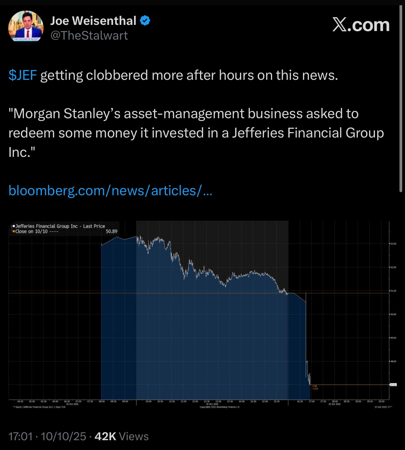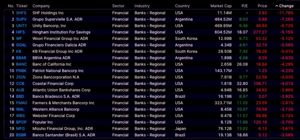 This is exactly the type of news that can cause a run on a bank, and the timing couldn’t have been worse. It feels like Jefferies could be one of the first institutions under significant pressure as a result. Further, as I’ve been saying for the better part of the last year, regional banks were absolutely slaughtered today.