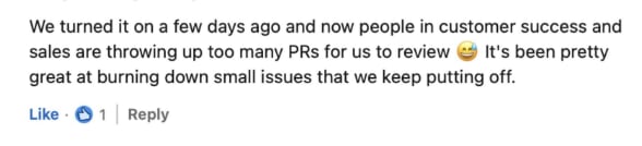 And those are used not only by engineers - CS, PMs and designers start opening PRs: