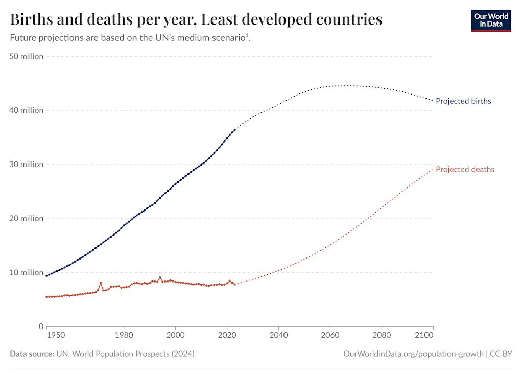 Meanwhile, the world’s poorest countries are going to experience strong population growth through the end of this century: