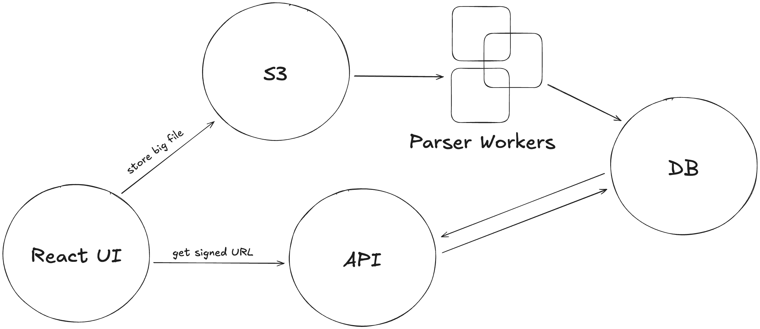Let's imagine that this same application needs a new feature. It will allow users to upload a file, then it will parse that file and store its contents in a database so it can visualize them.