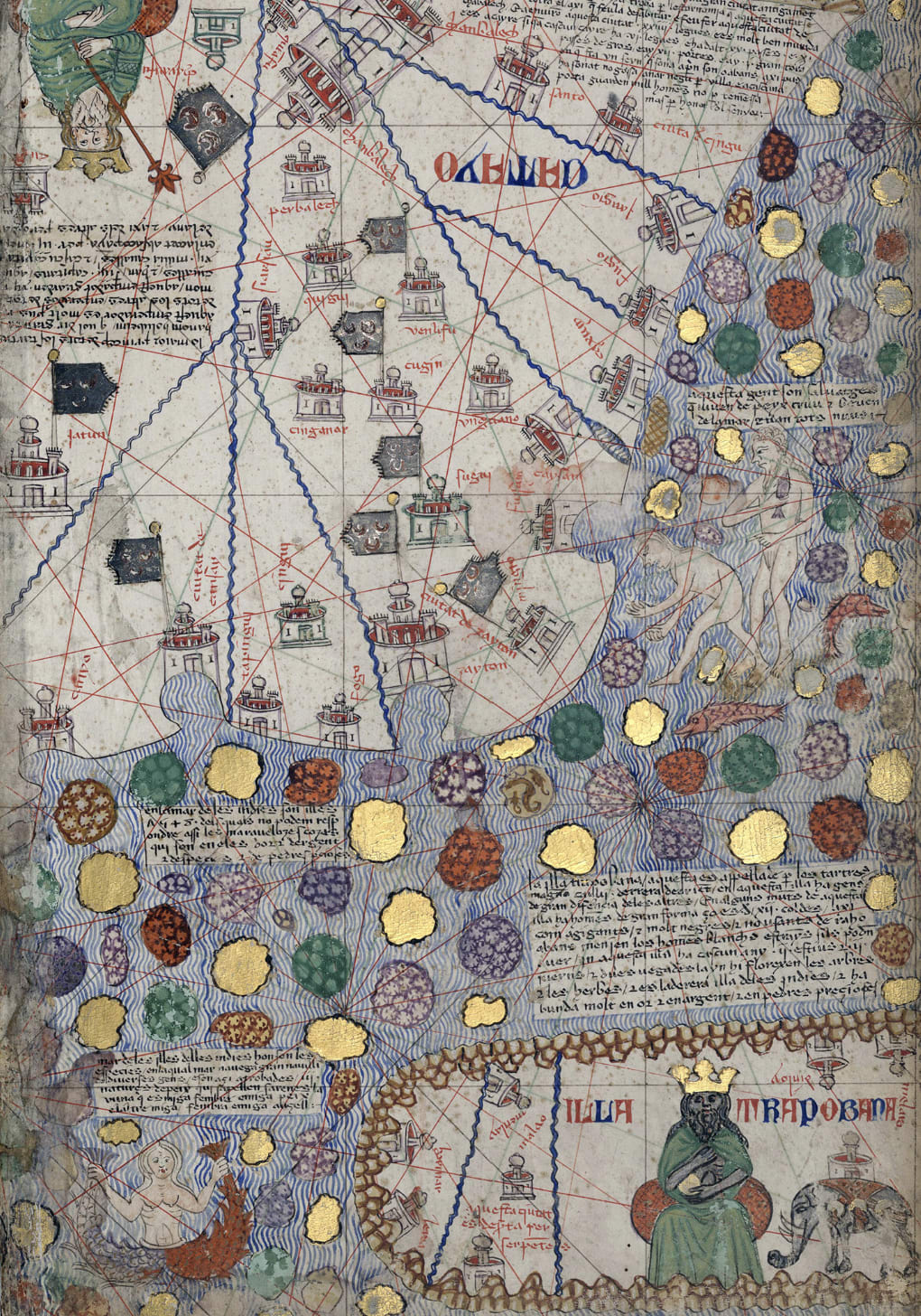 What did Medieval Spaniards know about India? They understood that it was wealthy and powerful, and that it sat at the center of the great trade routes of the Indian Ocean. The inscription tells us of a “great sultan, powerful and very rich. This sultan has seven hundred elephants, one hundred thousand cavalry soldiers under his command and even countless foot soldiers. In these regions, one can find plenty of gold and many precious stones.”