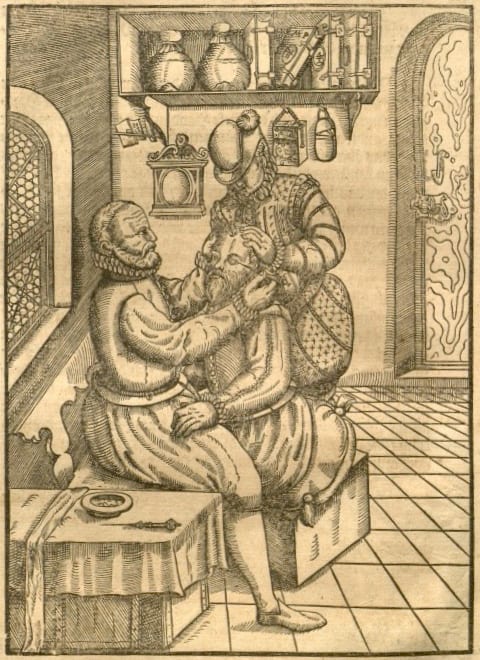In the Hellenistic and Roman world, the first references to the treatment of cataracts can be found in 29 B.C. in De Medicinae, the work of the encyclopedist Aulus Cornelius Celsus. Within, Celsus described a couching procedure, in which “… the needle … must be thrust … in the middle part betwixt the black of the eye (the limbus) and the external angle (the lateral canthus) [until]… it comes into a void space (inani loco).” While evidence of sharp instruments from excavations across Babylonia, Greece, and Egypt suggests the widespread use of couching, Greco-Roman surgeons did not so much advance the treatment as proliferate it, borrowing from methods recounted by travelers returning to the Mediterranean from India.