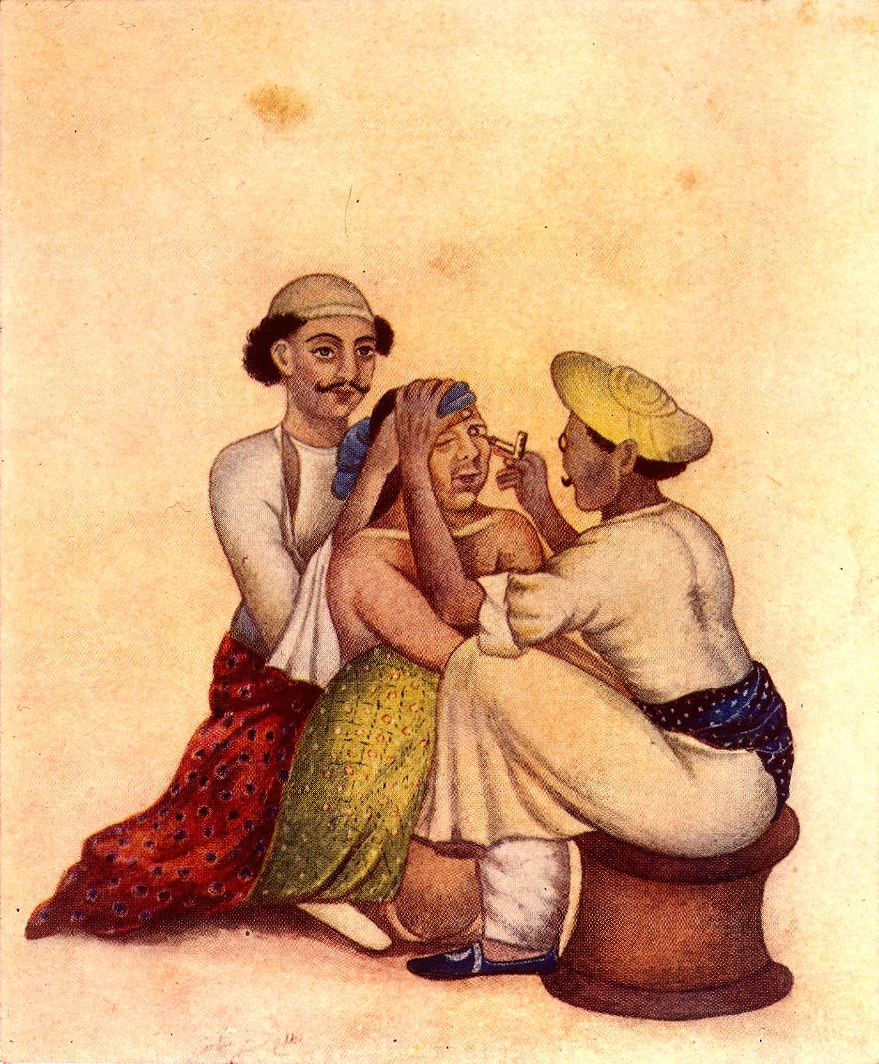 The surgeon then gently pushed or scraped the lens to move it out of the line of sight. The patient was asked to close the nostril opposite the treated eye and blow through the other, a technique believed to help expel the “phlegm” (kapha) from the eye.