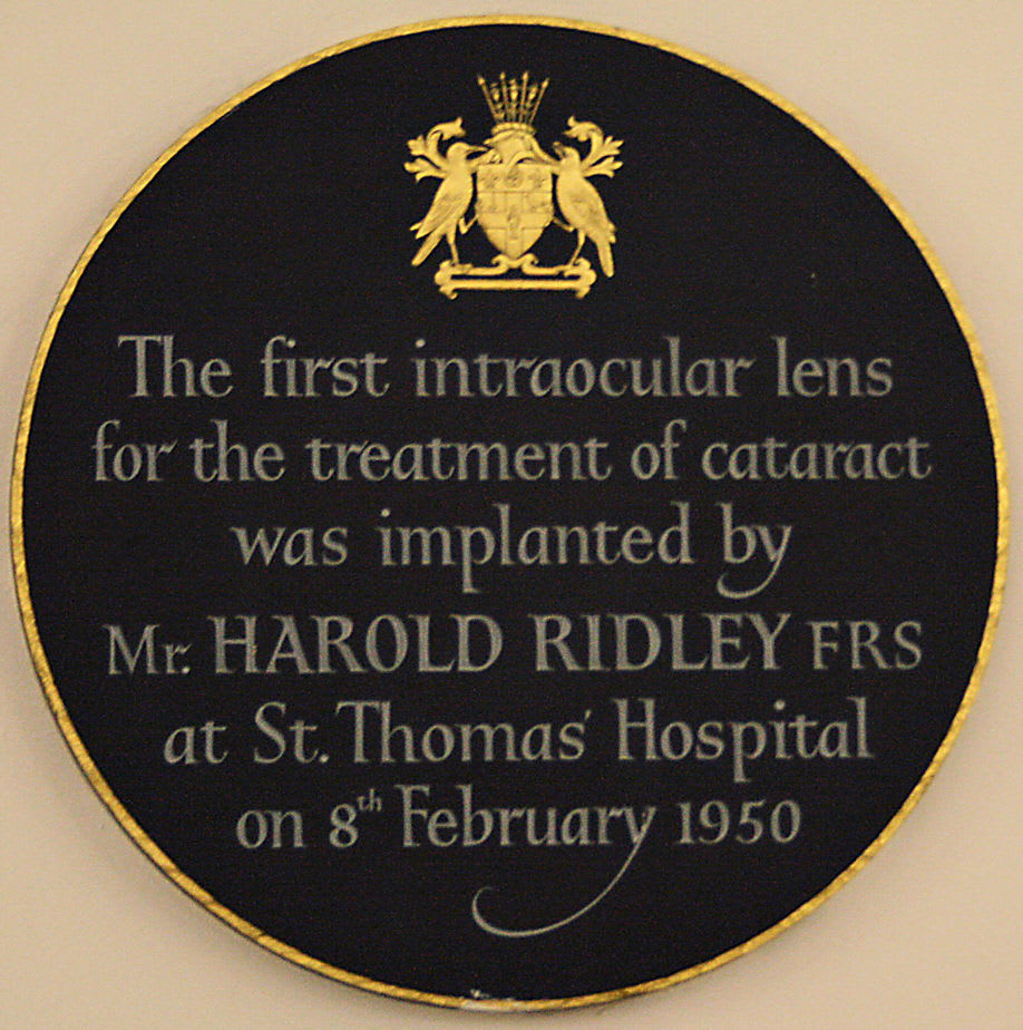 Despite a smattering of polite applause and a few questions, Ridley’s presentation quickly turned sour. Notably, Sir Stewart Duke-Elder, the doyen of British ophthalmology, refused even to examine Ridley’s patients, citing the absence of preclinical animal trials and the experimental nature of the procedure. There may have also been a layer of professional jealousy, as Duke-Elder had also been working at the Moorfields Eye Hospital in London and even attended to some of the same patients before passing them off to Ridley. One of Ridley’s biographers, David Apple, observed that he must have felt foolish: