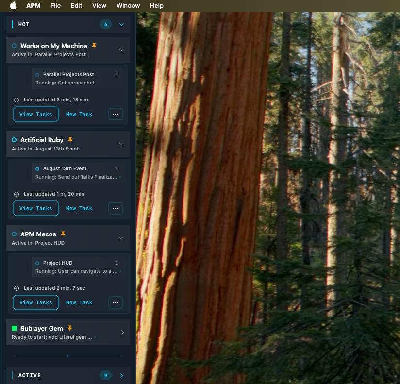 Always there. Always visible. Right now it gives you status updates on all your projects. But here's what clicking on a project will actually do soon: help resurrect an entire mental state.