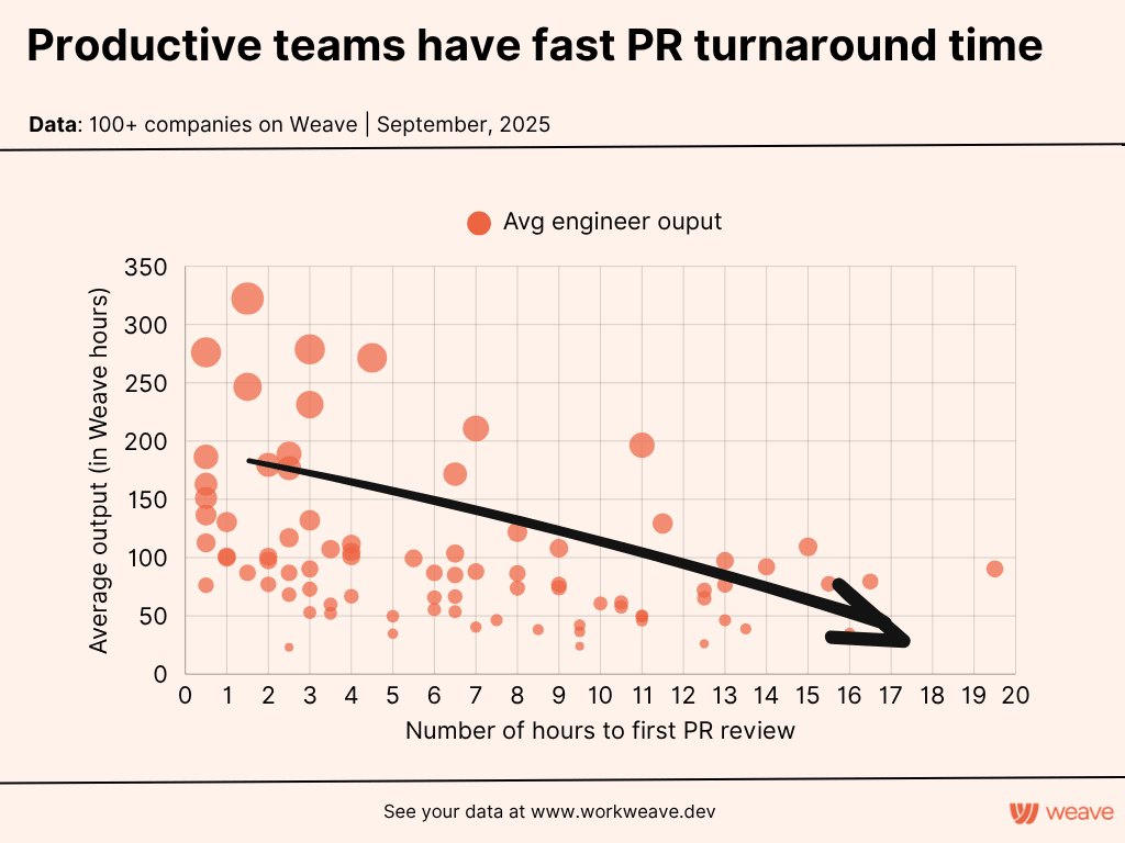 Teams reviewing PRs in under 3 hours are 2.1x more productive than teams taking 8+ hours!