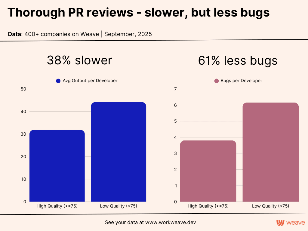 Yes, higher quality reviews make you go 38% slower - but you get 61% fewer bugs.