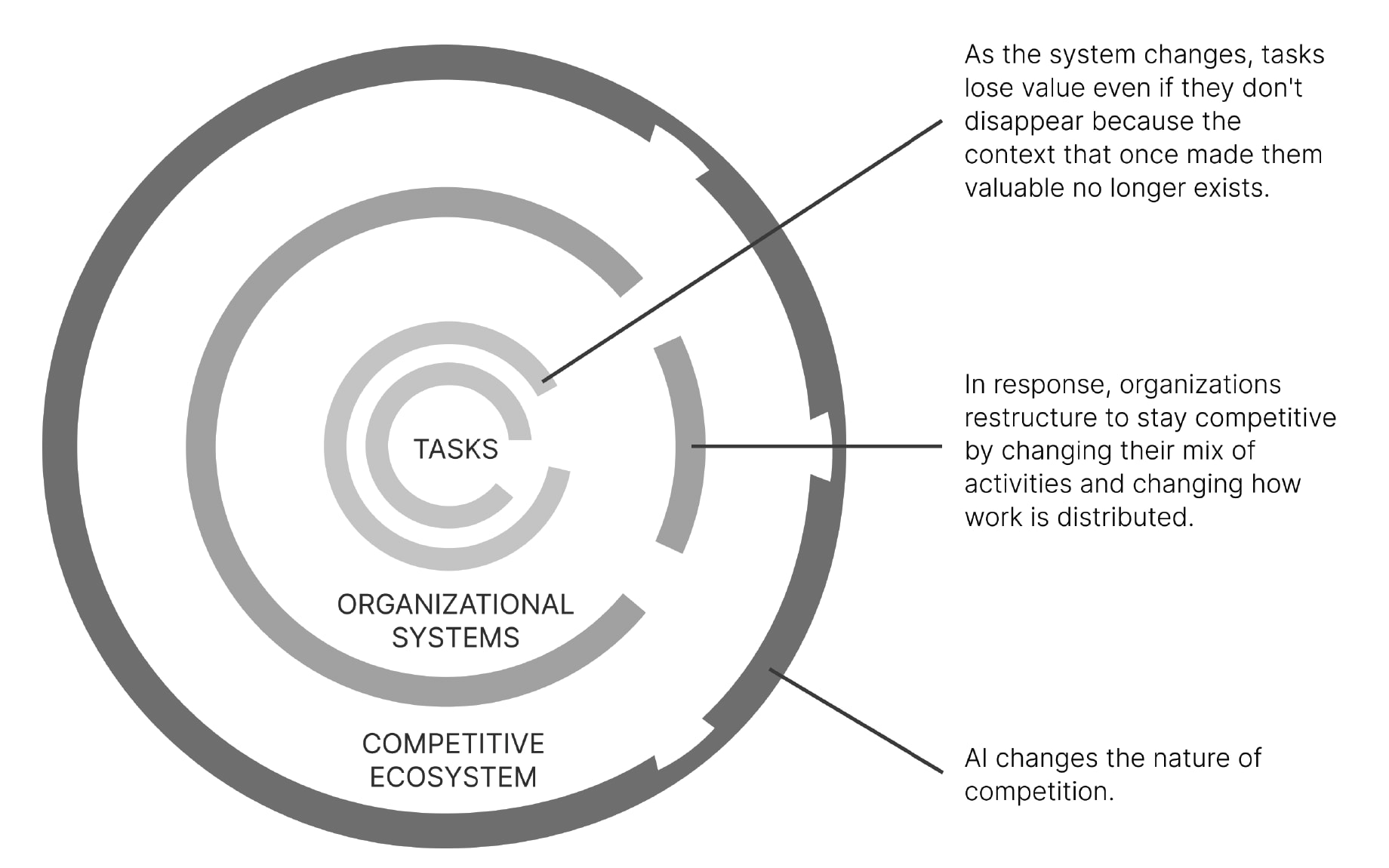 When workflows change, reporting lines, incentives, compliance structures, and even the logic of competition change in response.