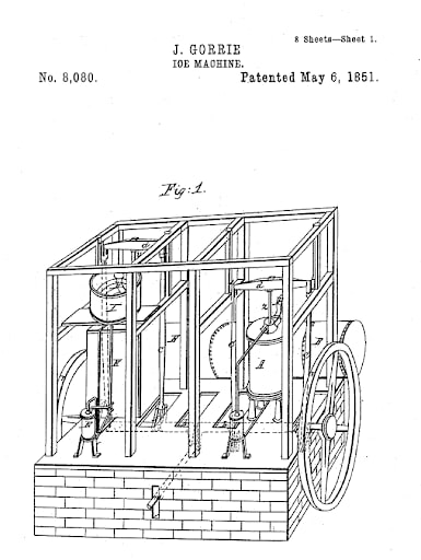 Technologically, artificial ice is an invention centuries in the making that solved this serious societal problem. There have been many iterations of technologies, from a Spanish physician who used salt to lower water temperatures to more modern compression refrigerant systems. The key breakthrough was the discovery of the vapor-compression cycle by William Cullen, which is how refrigeration still works today. Decades later, John Gorrie realized this could be used to make ice. Various improved systems were proposed, varying in which refrigerants they used, the design of the components of the system, and so on. The first practical implementation, though, was built in Australia, where it was a commercial success due to the impracticality of shipping ice great distances from Britain. As costs came down, artificial ice became so dominant that most people today don’t even realize we used to get ice from nature.
