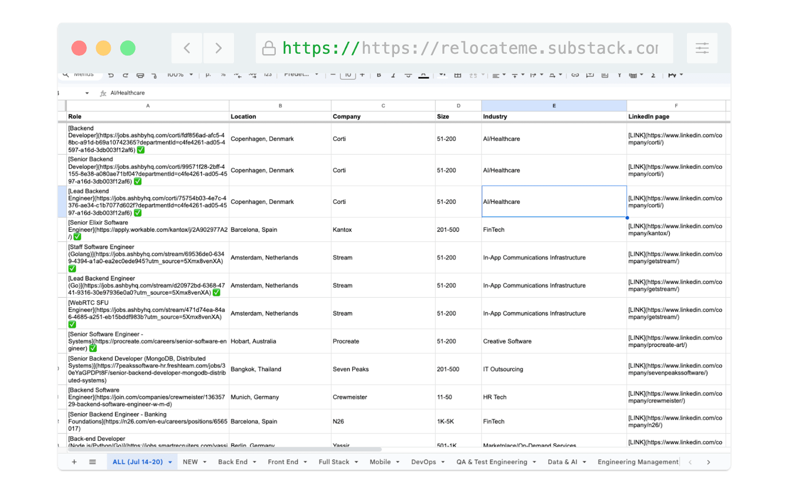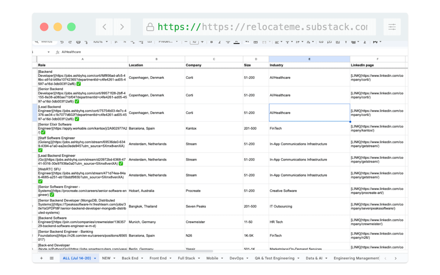 But we’re in 2025. So… how is the tech relocation scene looking like today? Since February, I’ve been tracking every tech job I could find that offers relocation and visa support. I’ve looked at over 1,500 listings—and not just the ones that say “we relocate the right candidate” or “must already have work authorization.” I verified each one manually to make sure these roles actually do what they claim: sponsor a visa and help you move to another country.