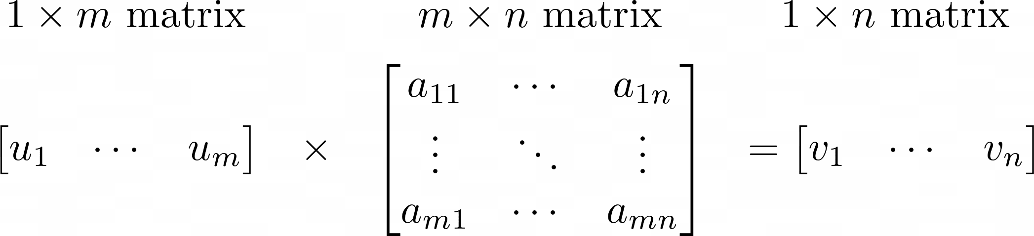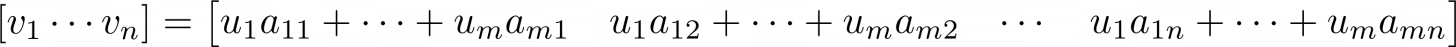 We also know that the elements of the 1*n vector are in fact sums of products of the matrix elements on the left. This is illustrated below: