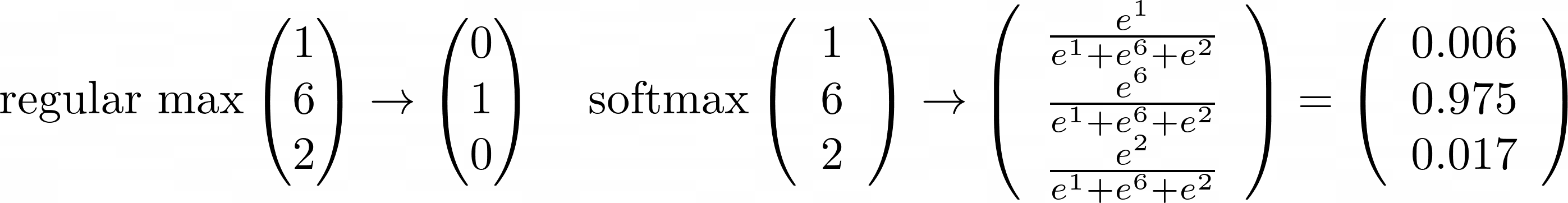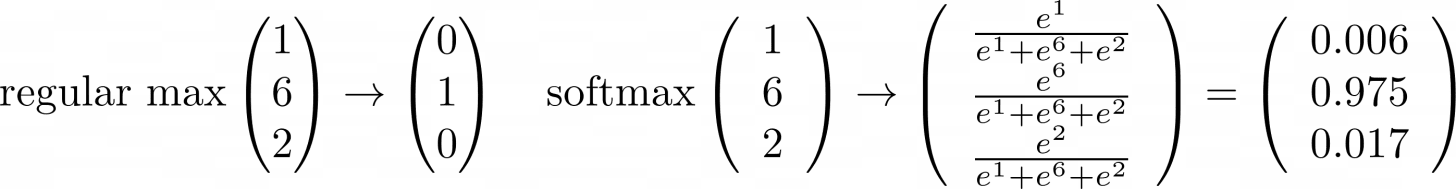 The example below illustrates the difference between the softmax function and a regular maximum function (Meerkat, 2023):