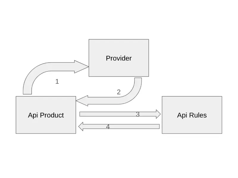 - The provider, which is a third-party API, processes the information and returns the corresponding itineraries to the product API